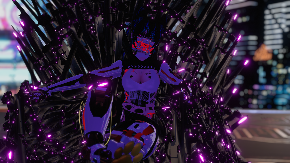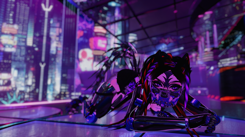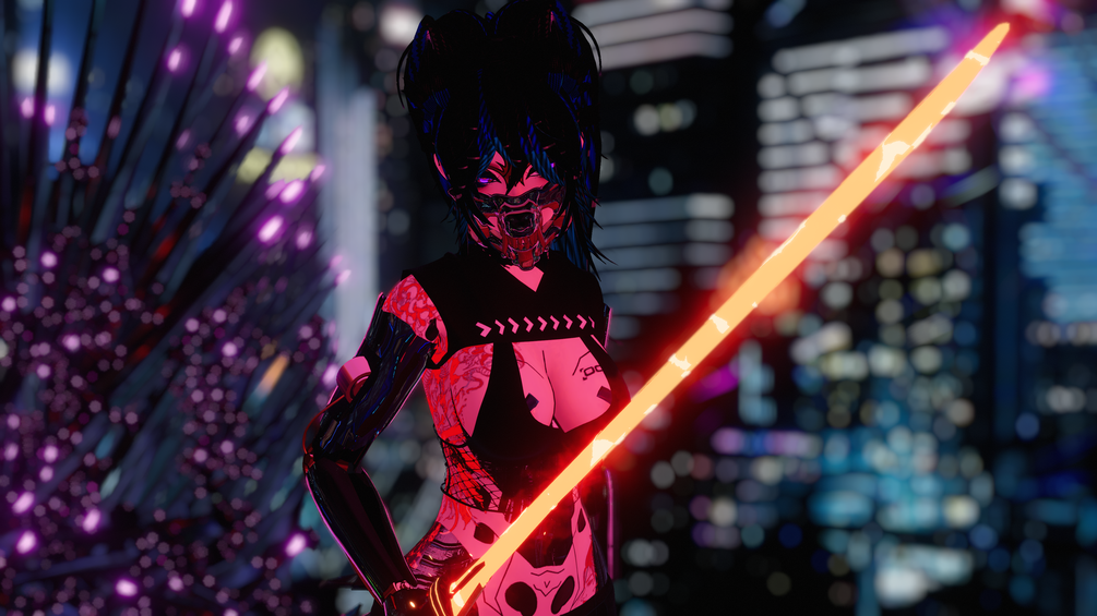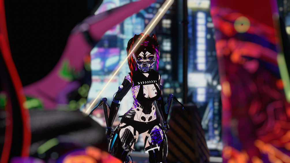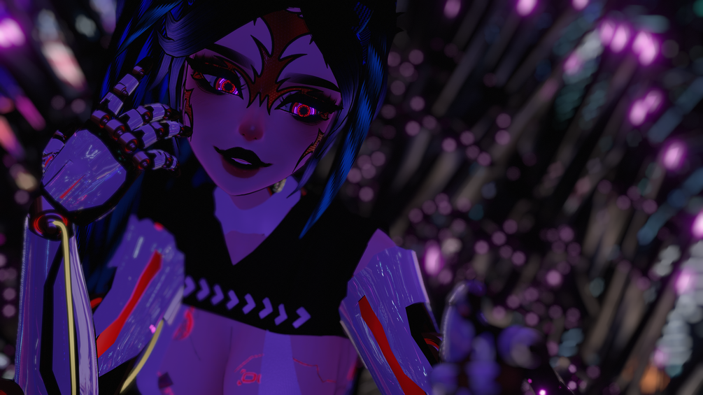 Hue shifts: hair, the gold in the cybernetics, cybernetic emissions, cybernetic wires, acc emissions, tattoo emissions, and her cybernetic eyes!